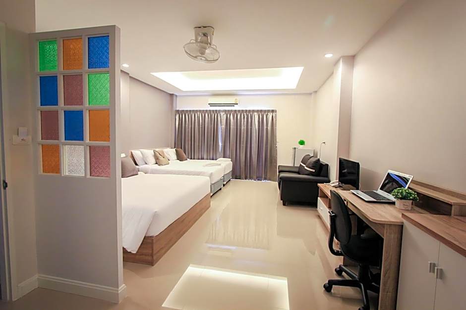 The spacious family room offers air conditioning, a private entrance, a balcony with city views as well as a private bathroom boasting a shower. The unit has 3 beds.